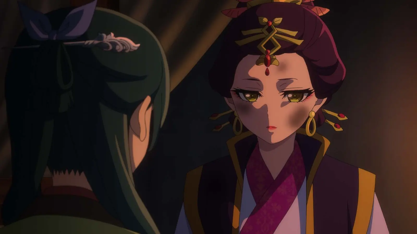 時を同じくして、後宮の下女が堀の中で水死体となって発見された。下女は“投身自殺”という衛兵の見解を聞いた猫猫は「自殺かどうかは分かりませんが少なくとも1人では無理だと思います」と壬氏に話す。城壁は高く道具がないと難しいと推理する猫猫。他殺なのか?と壬氏が猫猫に問うと「それは分かりません…。ただ生きたまま堀の中に落ちたのは確かだと思います。堀から這い上がるために何度も壁をかいたのでしょう。死体の指先が赤く血に染まっていました」と告げ、壬氏も考え込んでしまう。