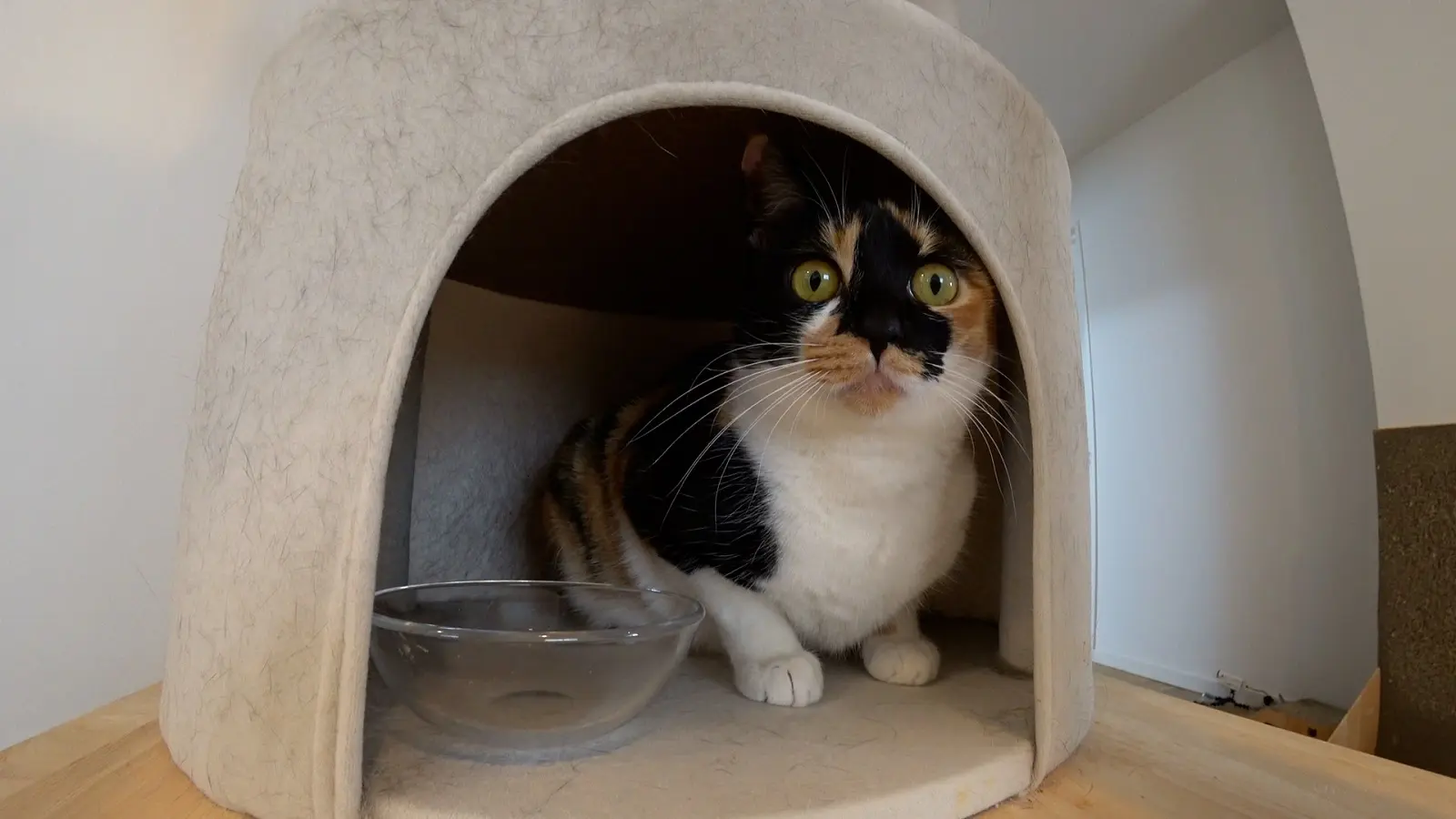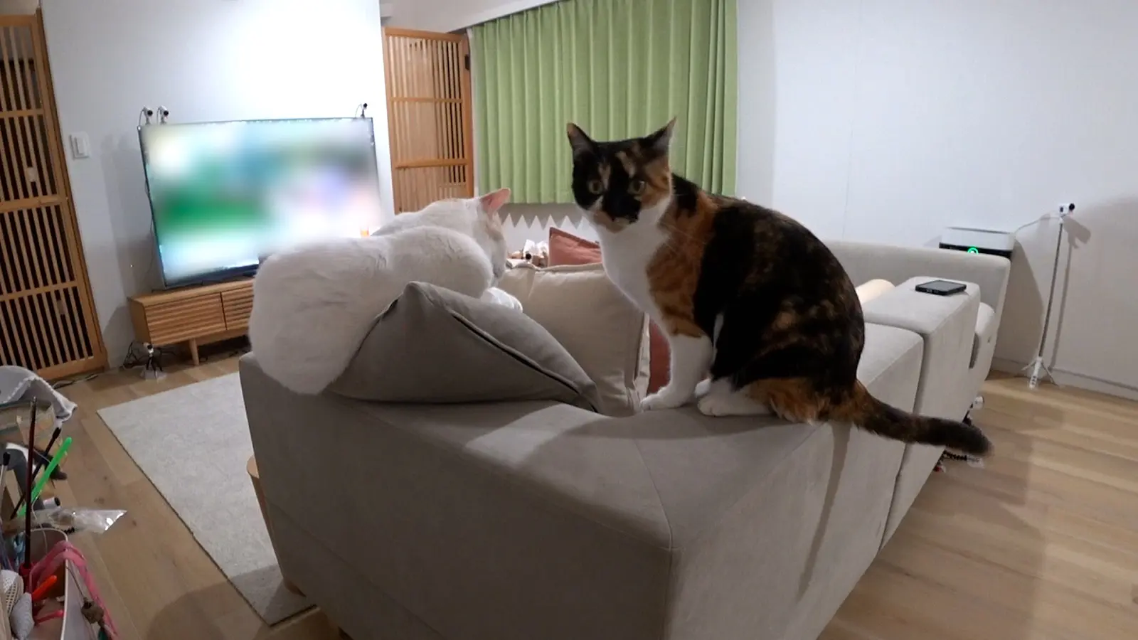 この『ノエル』の動きに『ぷりゅ』はおびえてしまい、なかなか打ち解けられない様子。さらにもう1匹の先住猫『リオン』は、『ぷりゅ』を威嚇。『ぷりゅ』はこれまで他の猫と関わったことがないため、先住猫たちと距離を縮めることができない。