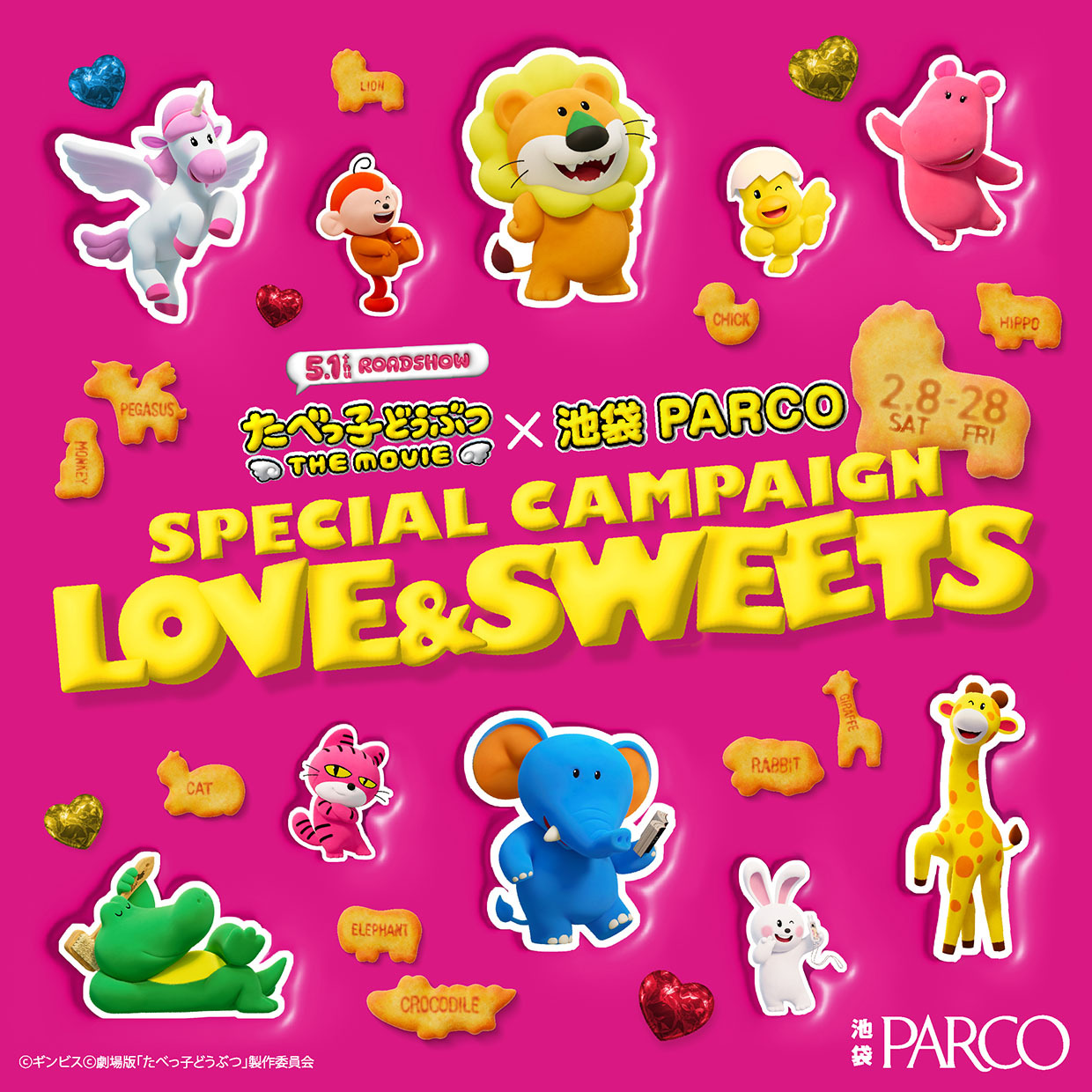 池袋PARCO では、SPECIAL CAMPAIGN「LOVE&SWEETS」開催中。オリジナルグッズのPOPUP SHOPやグリーティング、フォトスポットなどイベントが多数!本館5F イベントスペース「たべっ⼦どうぶつ THE MOVIE POPUP SHOP」にてオリジナルグッズも販売中。