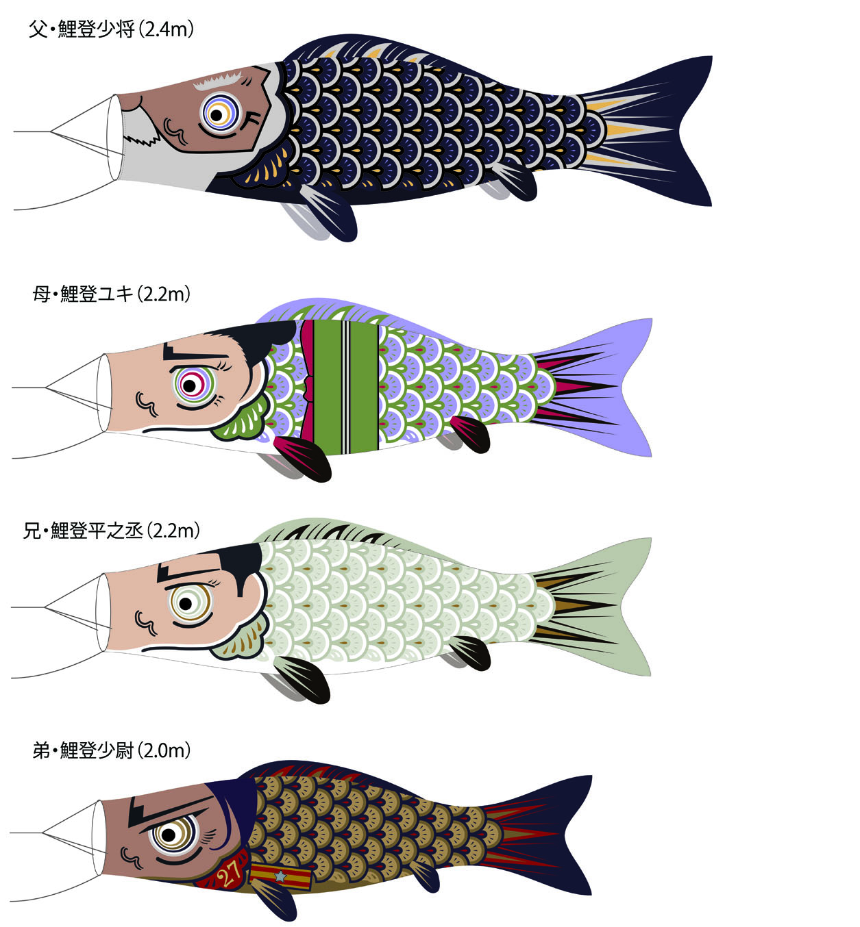 鯉登少将(父)、鯉登ユキ(母)、鯉登平之丞(兄)、鯉登少尉(弟)の鯉登(こいのぼり)展示が決定ッ!!